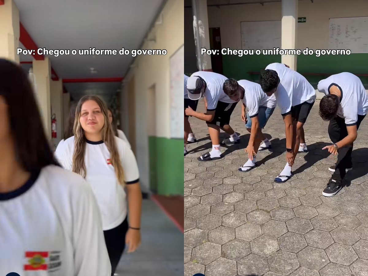Alunos do terceiro ano da Escola de Educação Básica Santa Catarina, em São Francisco do Sul, gravaram um vídeo mostrando o novo uniforme escolar distribuído pelo governo de Santa Catarina e a publicação viralizou nas redes sociais. O registro ultrapassou 199 mil visualizações em menos de dois dias.