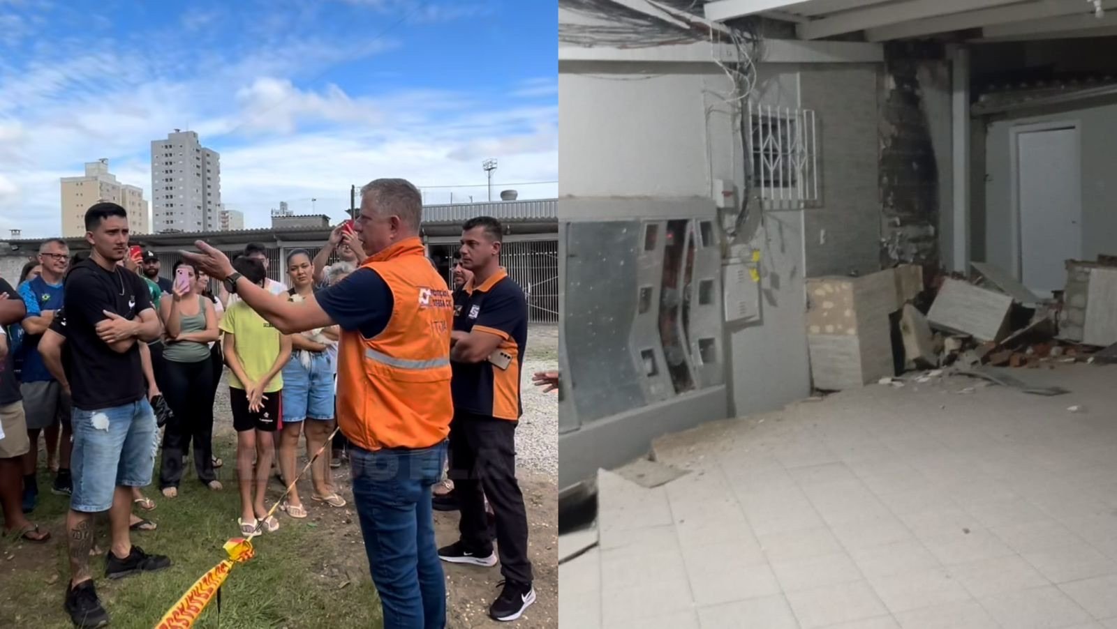 A Defesa Civil de Itajaí, o Corpo de Bombeiros Militar e demais forças de segurança foram acionadas por volta das 21h30 após parte da edificação ceder. O local foi evacuado e interditado.