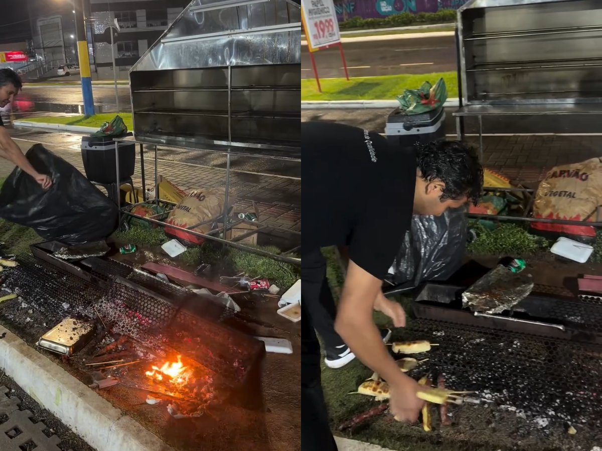 Douglas, dono do perfil O Santo Churrasquinho, publicou um vídeo nas redes sociais logo após a tempestade. Nas imagens, a churrasqueira aparece tombada no chão, espetinhos espalhados pela calçada e embalagens molhadas pela chuva. Segundo o empreendedor, produtos como picanha, linguiça, pão de alho e queijo foram perdidos. Parte da mercadoria do dia ficou inutilizada.