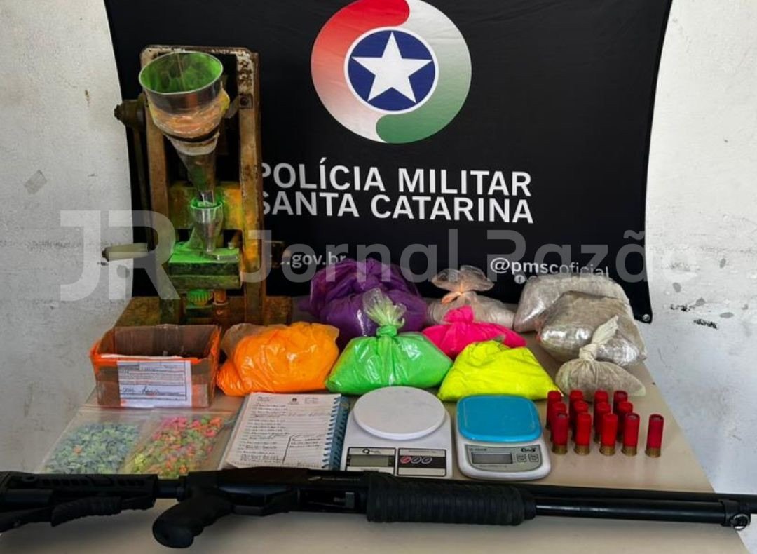 No imóvel rural, a polícia apreendeu cerca de 250 comprimidos de ecstasy prontos para venda, aproximadamente 3,7 quilos de pó de ecstasy (mistura de MDA com insumos, já preparada para prensar), uma prensa mecânica industrial com contador que registrava mais de 40 mil batidas, 26 punções com estampas variadas (“abacaxi”, “EA Sports”, “Disney”, “Chaves”, entre outras), 17 quilos de celulose microcristalina, seis pacotes de corantes, estearato de magnésio, duas balanças de precisão, um caderno com anotações detalhadas de produção e duas caixas de encomendas com etiquetas de compra em nome de Zaine Momm de Lins.