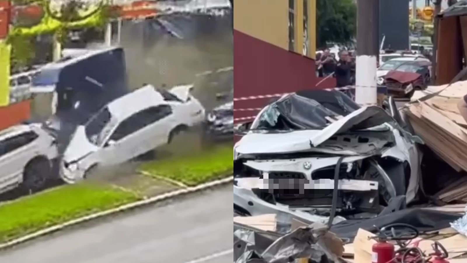 Sem conseguir parar, o veículo acabou atingindo 12 carros que estavam parados no semáforo, provocando uma sequência de colisões.