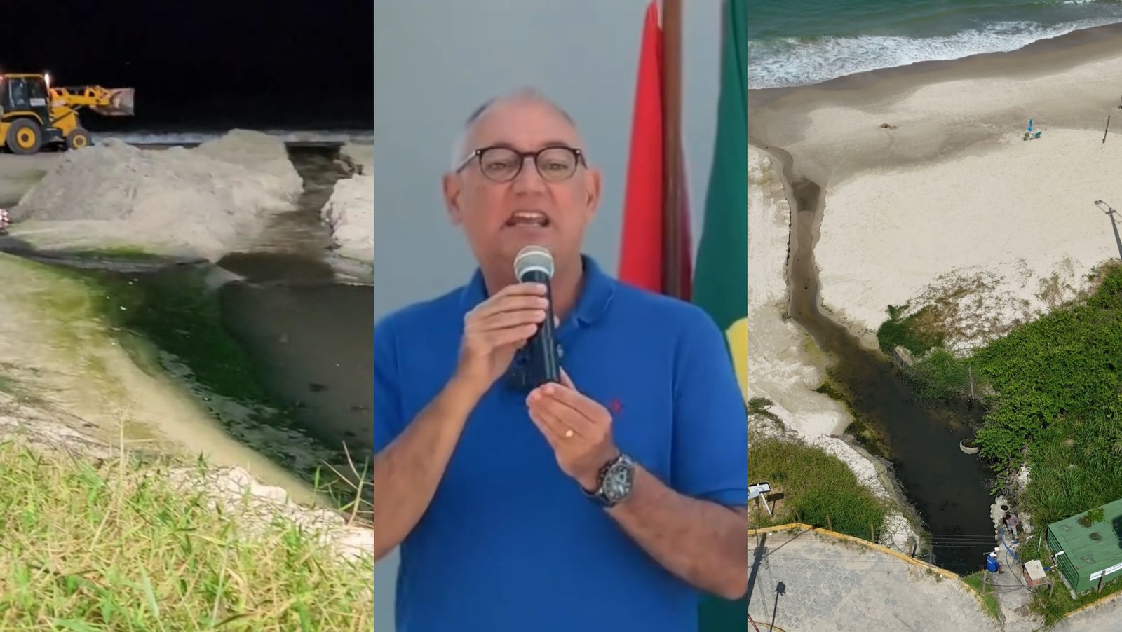 Em meio à indignação generalizada, moradores flagraram tratores e retroescavadeiras operando durante a noite no leito de rios e na faixa de areia, escavando valas, desviando cursos d’água e abrindo canais diretamente para o mar. As imagens, divulgadas nas redes sociais, escancaram o cenário de improviso e levantam suspeitas graves: seria uma tentativa desesperada de ocultar despejos clandestinos de esgoto?