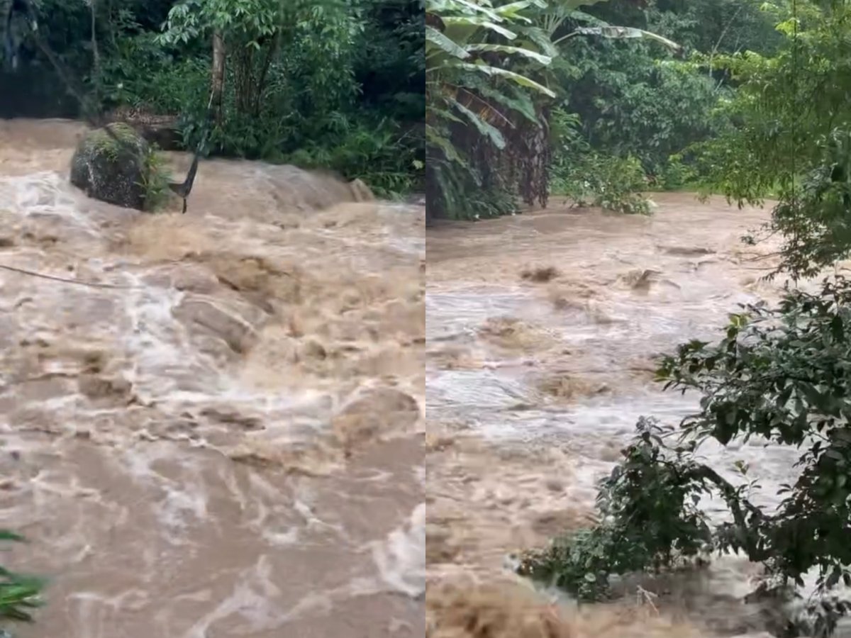 Um vídeo gravado por um morador da região do Pico da Pedra, em Camboriú, mostra a força impressionante da correnteza provocada pela chuva persistente que atinge o município nesta segunda-feira (6). Nas imagens, é possível ver o grande volume de água descendo com força pela área, que fica no Morro da Congonha, a 680 metros de altitude.