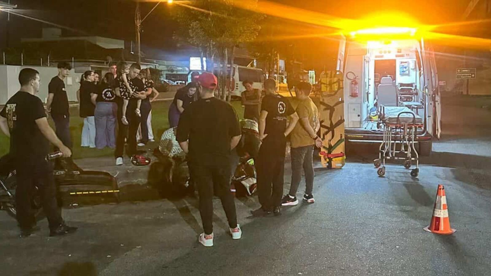 No local, equipes dos Bombeiros Militares realizaram o atendimento às duas pessoas que estavam na motocicleta. Não foram divulgadas informações sobre o estado de saúde das vítimas até o fechamento desta publicação.