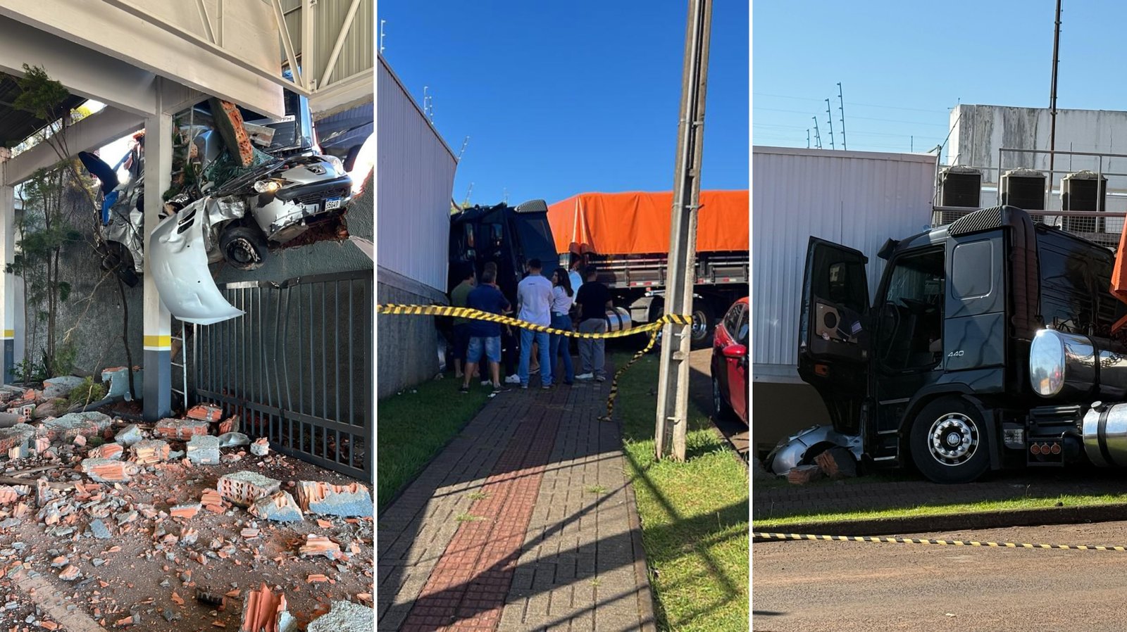 Uma carreta desgovernada atingiu um carro estacionado e o prensou contra a parede de uma concessionária na manhã desta sexta-feira (20), em Chapecó, no Oeste de Santa Catarina. O acidente aconteceu por volta das 8h30, na rua Polidoro de Almeida Melo, no bairro Bela Vista. Apesar do impacto e da destruição do veículo atingido, ninguém ficou ferido.
