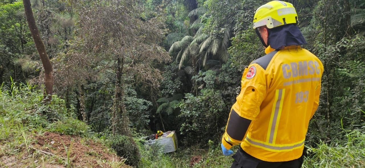 Um homem de 41 anos ficou ferido depois que um furgão caiu em uma ribanceira de cerca de 50 metros na tarde desta quarta-feira (11), na Rua Brusque, na região da divisa entre Blumenau e Gaspar, no Vale do Itajaí. A vítima conseguiu sair sozinha do veículo após o capotamento e foi resgatada pelo Corpo de Bombeiros Militar.