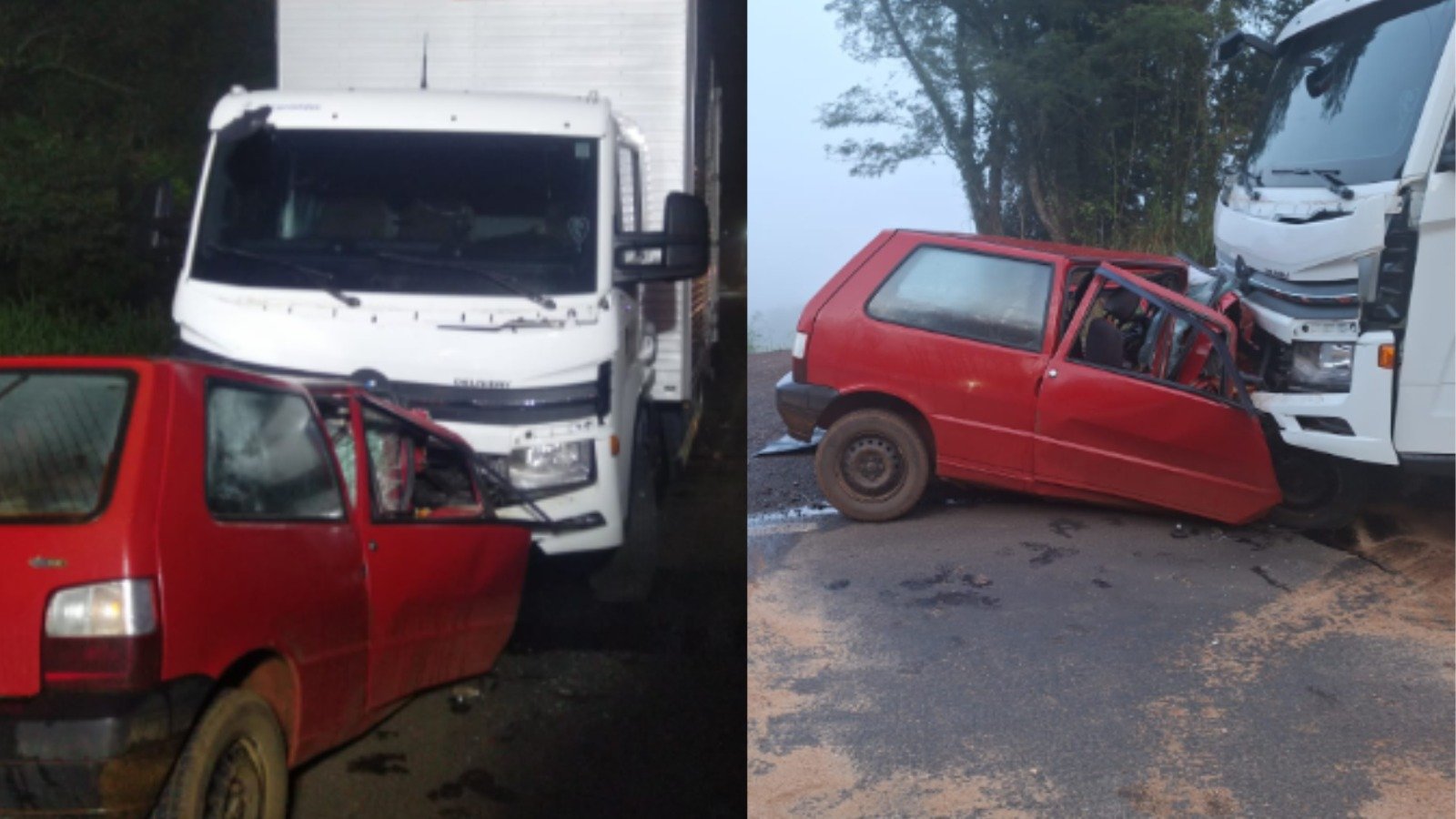 O acidente aconteceu por volta das 2h. Segundo o Corpo de Bombeiros, o Fiat Uno, com placas de Quilombo, bateu de frente com um caminhão de São Lourenço do Oeste. A violência da colisão prendeu o motorista do carro nas ferragens, sem qualquer possibilidade de socorro. O condutor do caminhão não sofreu ferimentos.
