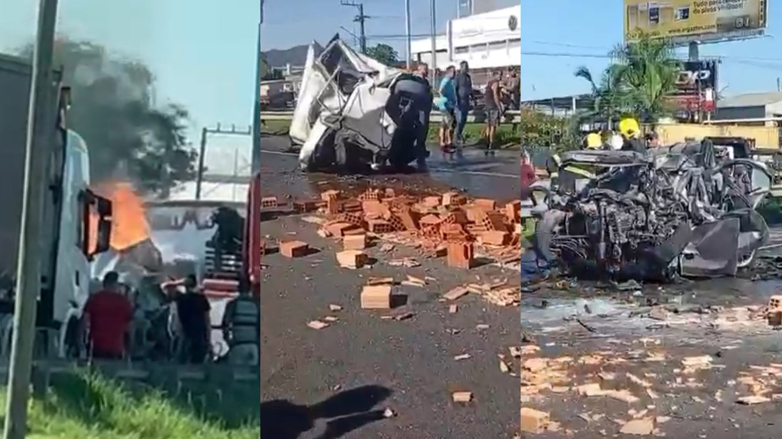 De acordo com informações de testemunhas que passavam pelo local, um caminhão teria prensado uma Kombi e um carro de passeio. Com o impacto, a Kombi teria explodido, gerando uma intensa coluna de fumaça que podia ser vista a quilômetros de distância.