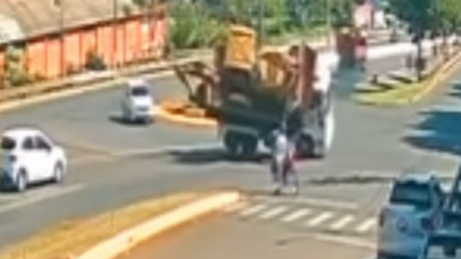 Por volta das 11h, um caminhão que transportava um trator tombou no trecho final da Avenida Fernando Machado. Com o impacto, o veículo ficou de lado e a máquina que era levada na carroceria acabou sendo arremessada, ficando sobre a pista.