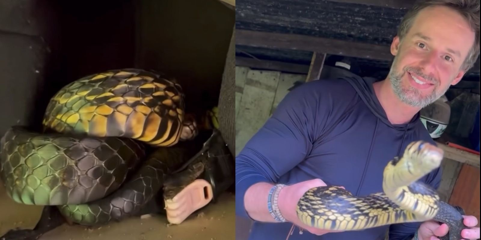 O resgate foi realizado pelo biólogo Christian Raboch Lempek. Antes de retirar o animal do local, ele fez uma brincadeira ao constatar onde a serpente estava escondida. “Quero ver quem vai pegar o capacete”, comentou.