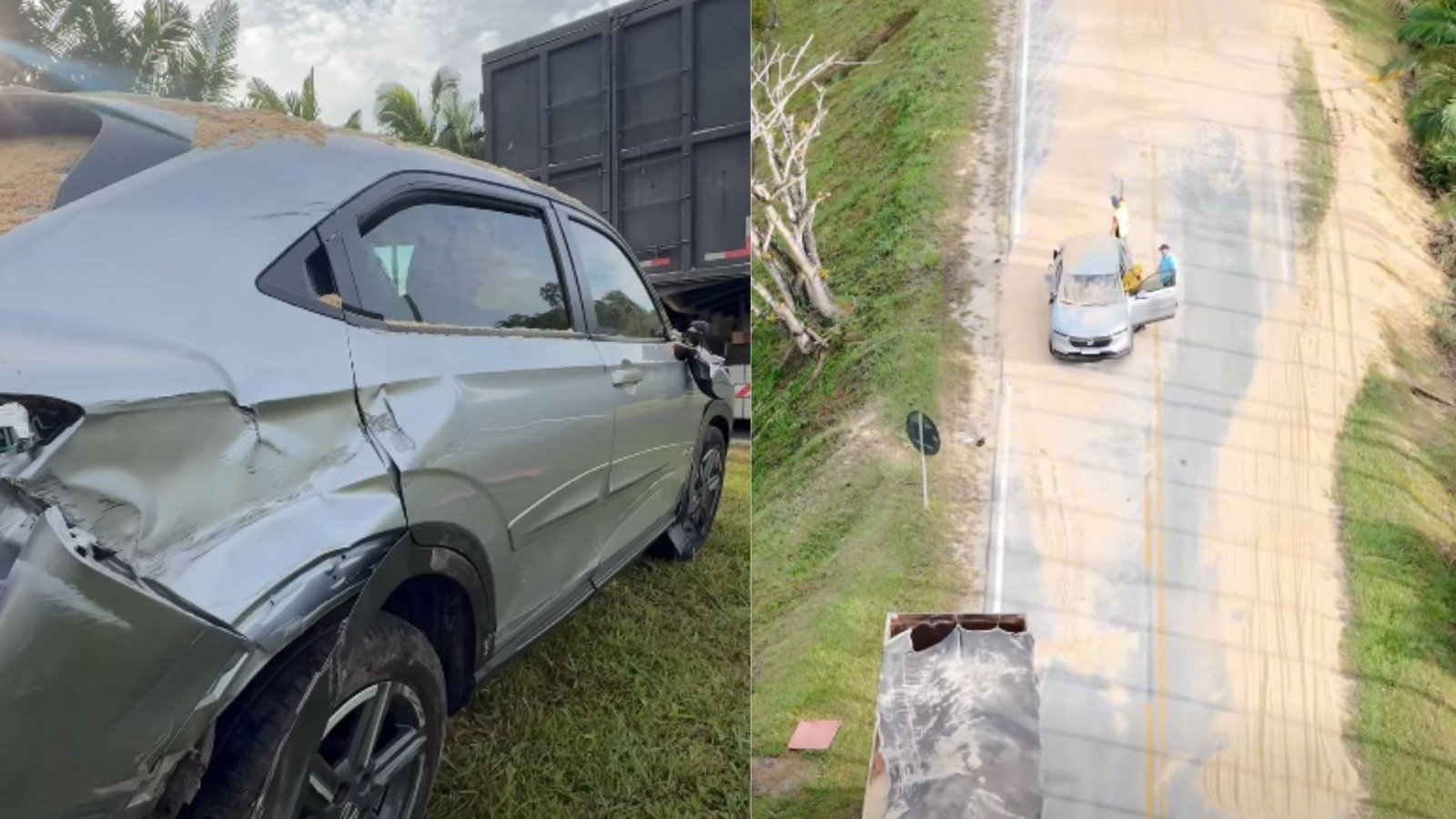 A equipe conversou com o sargento do Corpo de Bombeiros Militar, Dal Bosco, e segundo ele, uma empresa realizava serviço de limpeza na via e havia sinalização com cones no trecho. No entanto, o espaço de sinalização era curto, o que contribuiu para a ocorrência.