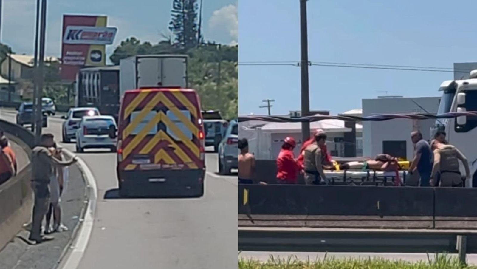 Já na BR-101, o homem teria pulado a mureta que separa as pistas e tentado atravessar da faixa sul para a faixa norte. Durante a travessia, acabou sendo atingido por um carro que seguia pela rodovia e não conseguiu desviar a tempo.