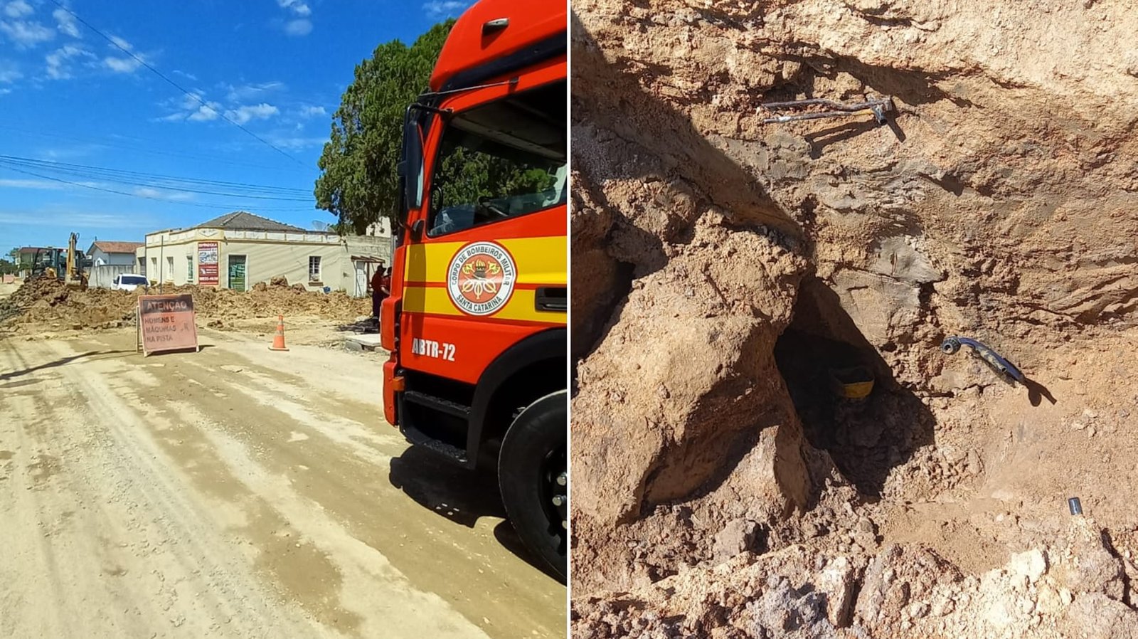 Após avaliação da área, os bombeiros constataram que o material que havia soterrado a vítima não apresentava risco imediato para a equipe de resgate. Com isso, foi iniciada a retirada utilizando ferramentas próprias para escavação e salvamento.