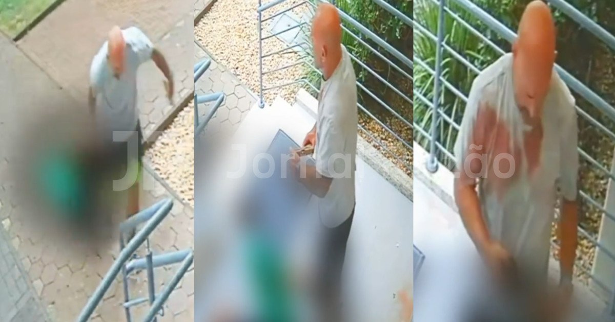 Nas câmeras, cujas imagens foram cedidas ao Jornal Razão pelo portal AJ Notícias, do repórter Alexandre José, é possível ver o momento em que o homem aborda a mulher, a arrasta pelos cabelos até a entrada do condomínio e a derruba no chão com um golpe de estrangulamento. A vítima grita por socorro, já coberta de sangue.