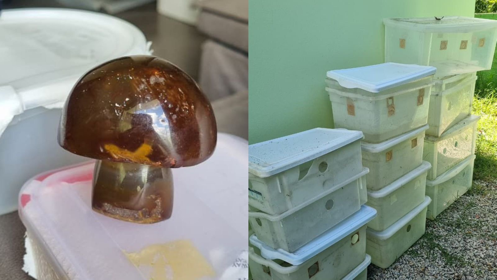 Durante o cumprimento das ordens judiciais nesta sexta-feira, um dos investigados foi localizado. Em um dos imóveis, os policiais encontraram estruturas destinadas ao cultivo dos cogumelos e esporos matriz, material biológico utilizado para iniciar o plantio e a propagação das espécies que contêm psilocibina.