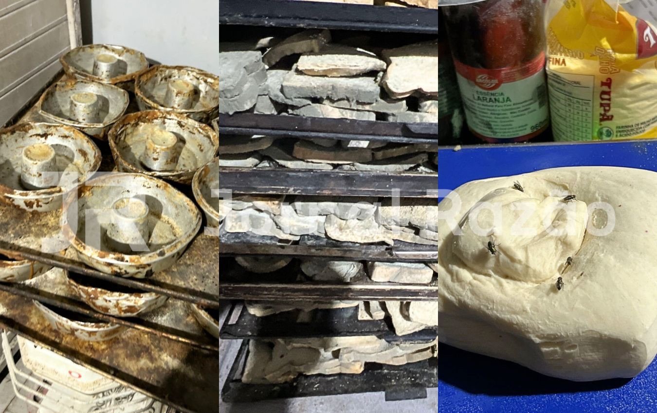 Durante a fiscalização no bairro Nova Descoberta, os agentes encontraram um cenário considerado de alto risco à saúde pública. Havia produtos com mofo, alimentos expostos com moscas aderidas, além de sinais claros de falta de higiene nas áreas de produção e armazenamento. As imagens registradas pela equipe mostram massas e pães armazenados de forma inadequada, utensílios enferrujados e ambientes sem qualquer controle sanitário.