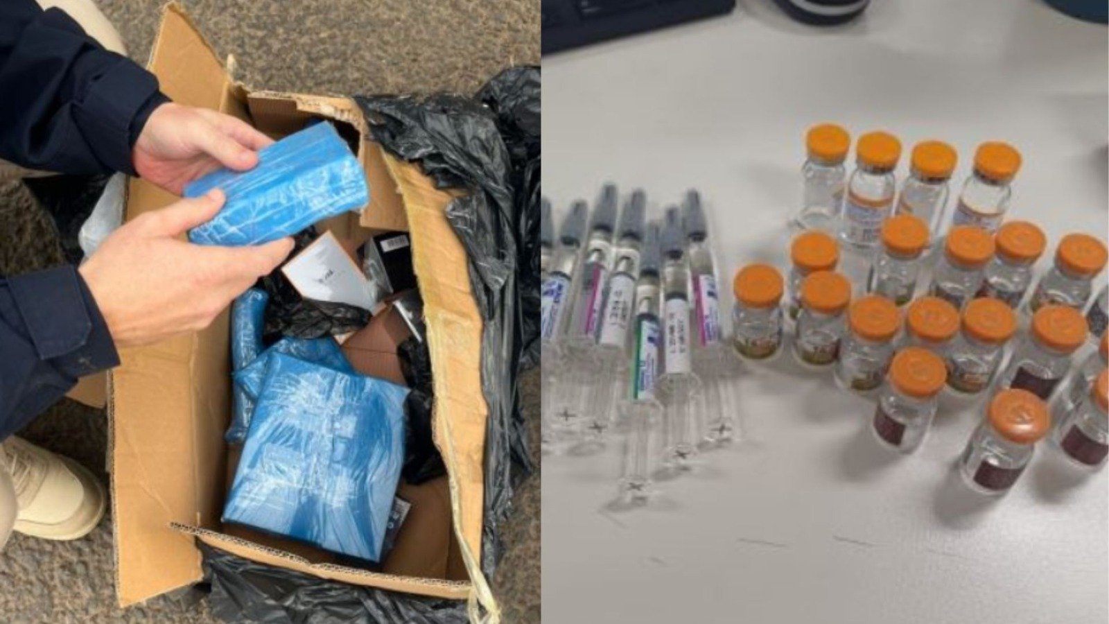Ao abrirem o pacote, os agentes localizaram 28 unidades de medicamentos para emagrecimento, incluindo ampolas e seringas, cuja importação é proibida no Brasil sem autorização dos órgãos competentes.
