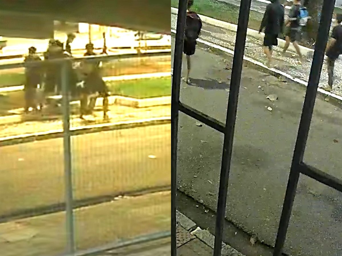 Imagens de câmeras de segurança da região registraram o momento da abordagem. As imagens mostram o grupo cercando a vítima e, em outro ângulo, os indivíduos se afastando do local após a ação. Os envolvidos vestiam moletom, bermuda, sandálias e tênis.