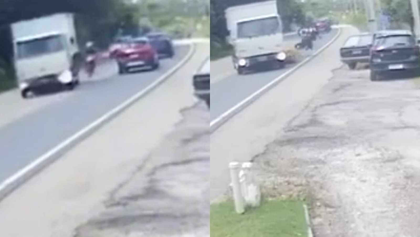 Imagens de monitoramento registraram um acidente de trânsito na SC-410, na localidade de Rio do Braço, ocorrido na manhã desta segunda-feira (5). A colisão envolveu um caminhão e uma motocicleta em um trecho da rodovia que conecta São João Batista a Nova Trento.